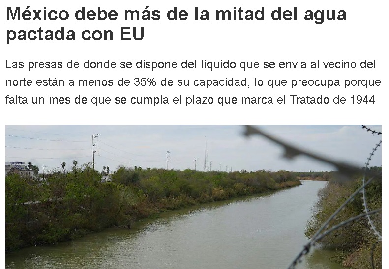México debe más de la mitad del agua pactada con EU